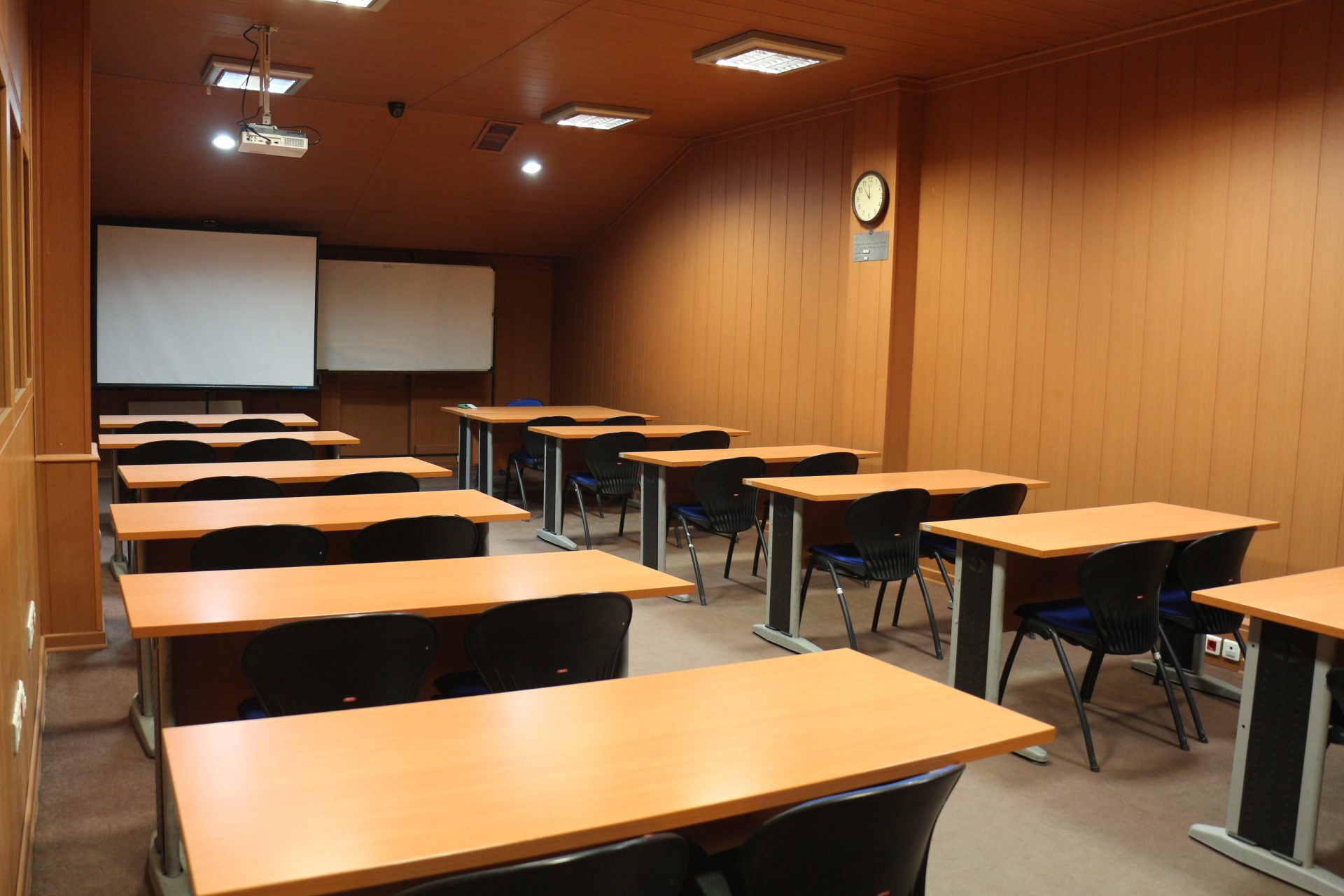 مناسب برای برگزاری کلاس‌های آموزشی با ظرفیبت ۲۶ نفر در محیطی ایده آل و با بهره مندی از امکانات آموزشی شامل کامپیوتر، ویدئو پروجکشن و پرده نمایش.